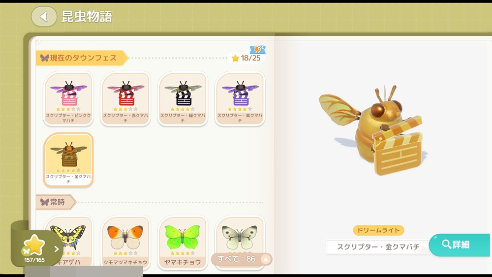 ハートピアスローライフでは、2026年3月21日よりドリームライトイベントが開催されています。イベント限定の魚・虫・野鳥などがあり、スクリプタービー(スクリプタークマバチ)は全5種類です。 シーズン1週目は4種類のみ解放でしたが、3月28日の2週目開始時...