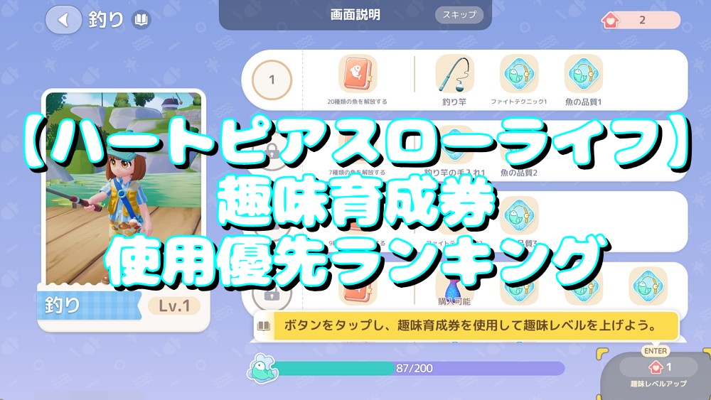 【ハートピアスローライフ】上級趣味育成券の入手方法