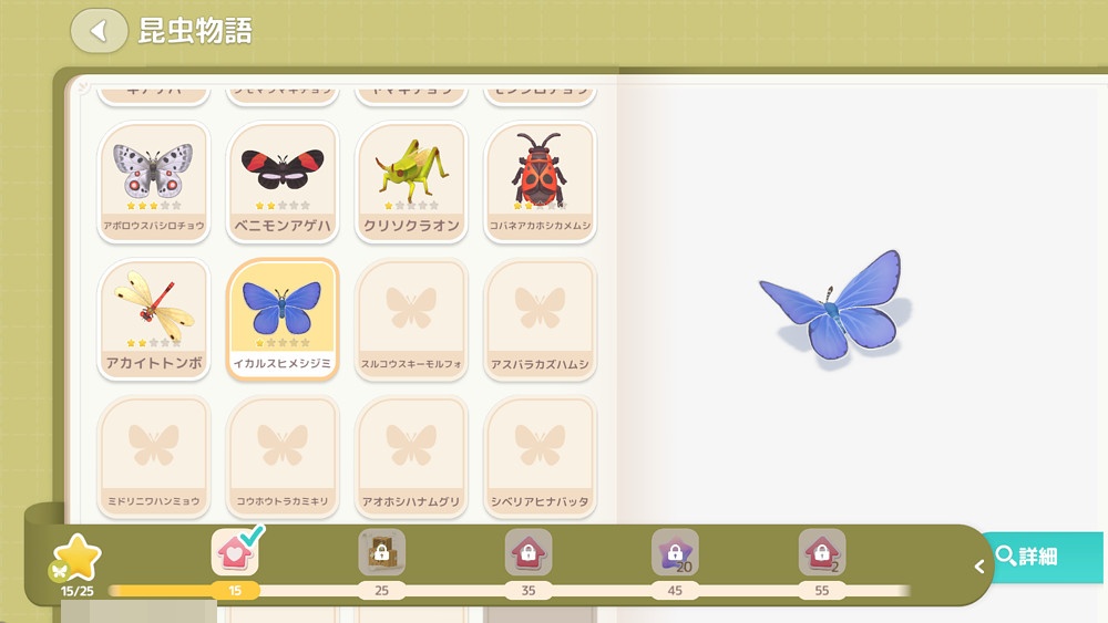 ハートピアスローライフの『新米開拓者の生活日誌』8日目に、虫捕りLv2に到達しイカルスヒメシジミを1匹確保するというクエスト(ミッション)があります。イカルスヒメシジミの出現場所はどこ?どんな見た目をしている? イカルスヒメシジミの入手方法、出... -