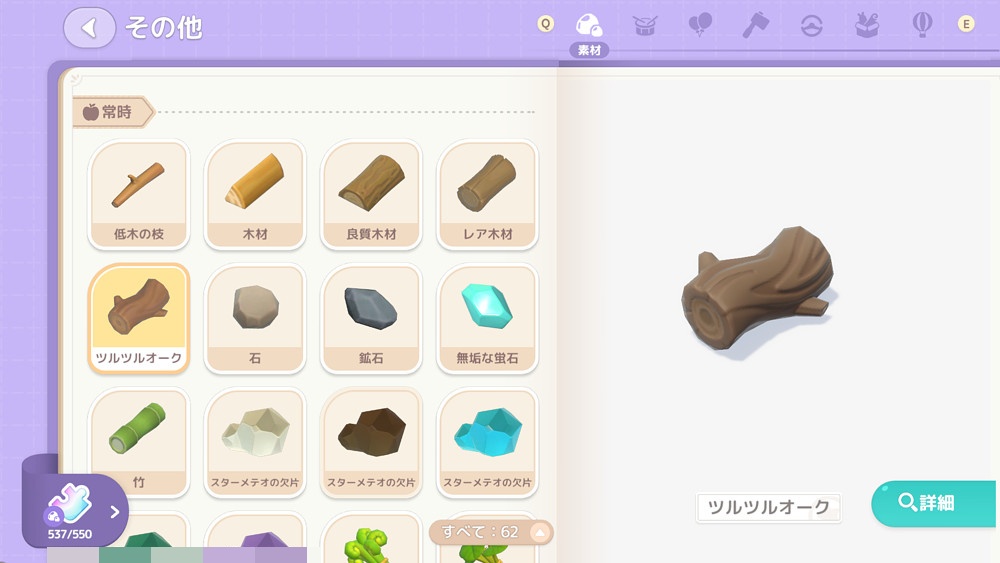 ハートピアスローライフの素材『ツルツルオークの木/滑らかなオークの木(ウォーキー)』の場所はどこ?ツルツルオークは入手方法が限られているため、貴重な素材の1つです。 ツルツルオークの取れる場所、入手方法、条件をご紹介します。 滑らかなオークの... -