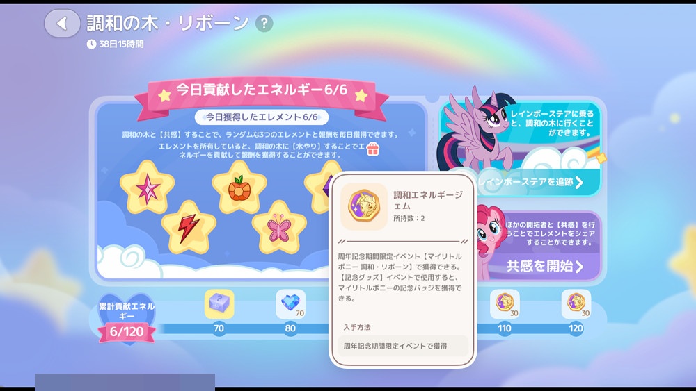 共感することで、3つのエレメントと調和エネルギージェムがもらえます。
