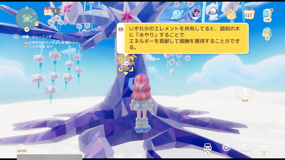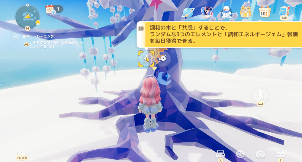 エレメントを入手したら、調和の木にお水をあげましょう。