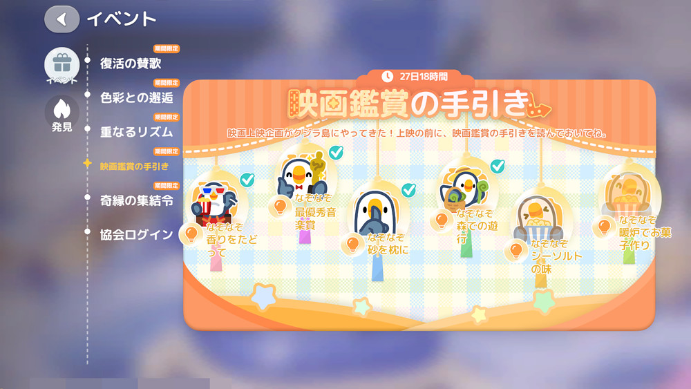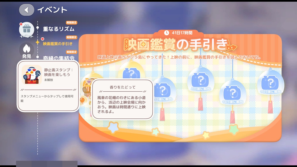 イベントの1つに『映画鑑賞の手引き』というものがあり、なぞなぞを解くとスタンプがもらえます。