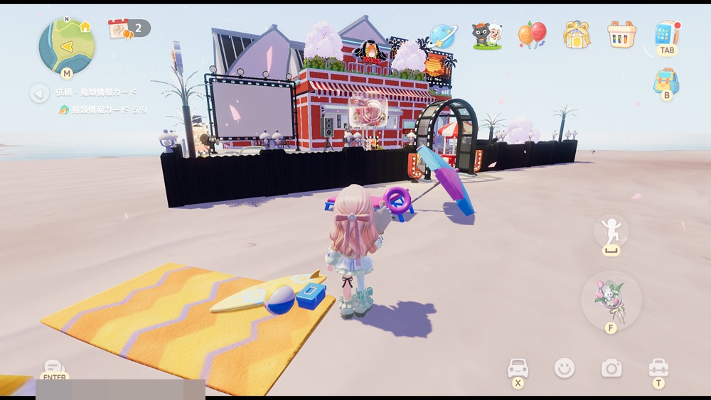 マップ左下のパープルビーチに行くと、イベント家具などを使った建物が!!