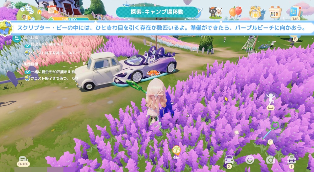 『スクリプタービーの中には、ひときわ目を引く存在が数匹いるよ!準備ができたら、パープルビーチに向かおう。』という延長に入った場合のみ、出現します。