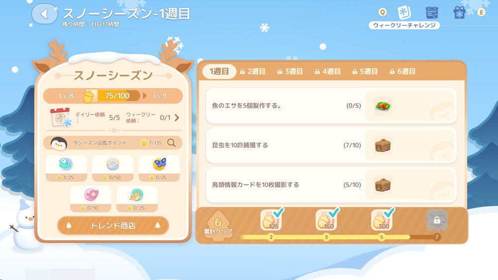 スノーシーズンイベントでは、ウィークリーチャレンジ、トレンドイベントの2種類があります。