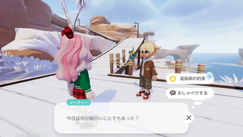 ノーティーからクエストを受注後は、1日1個、温泉山内にギフトエッグが出現します。