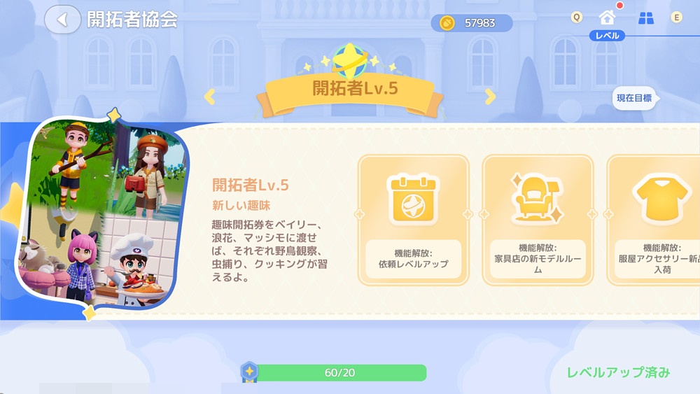 順番にクエストをこなすと、アカウントを作った当日中に開拓者レベル5まで上げることができます。