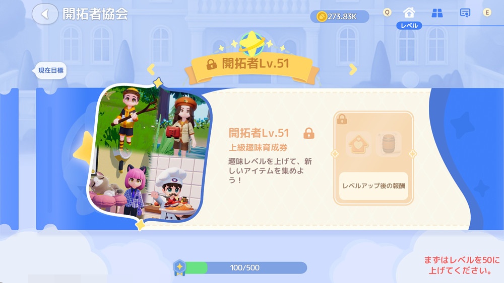 上級趣味育成券がもらえるようになるのは、開拓者レベル51からです。