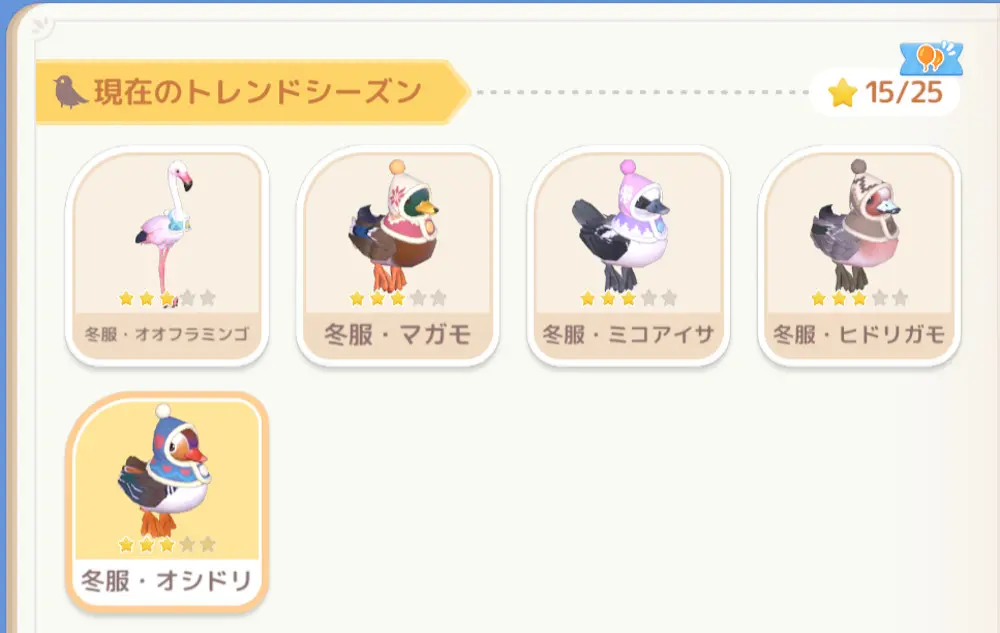 しかし、5種類目の『冬服オシドリ』は特定の条件が必要であり、激レア枠です。