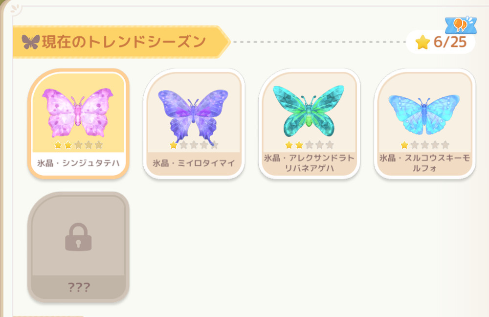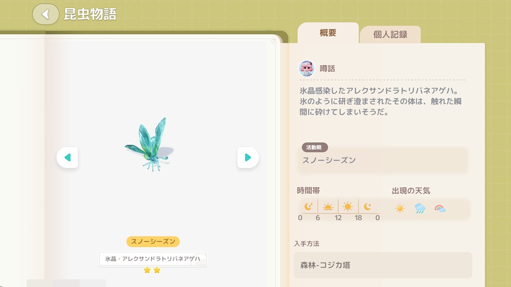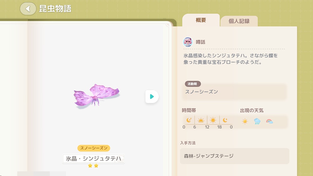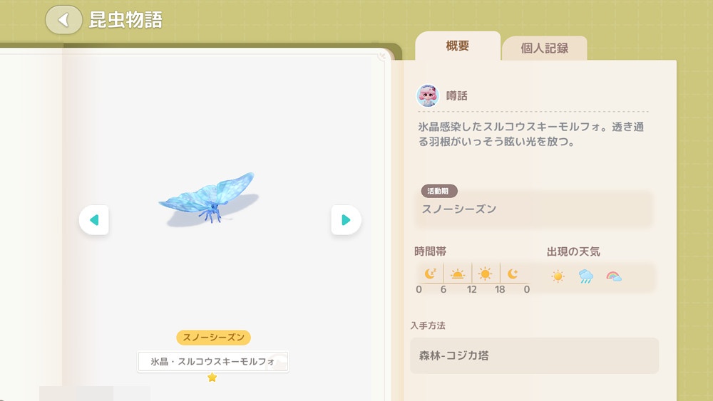 氷晶の蝶のレア度は趣味レベルの影響あり