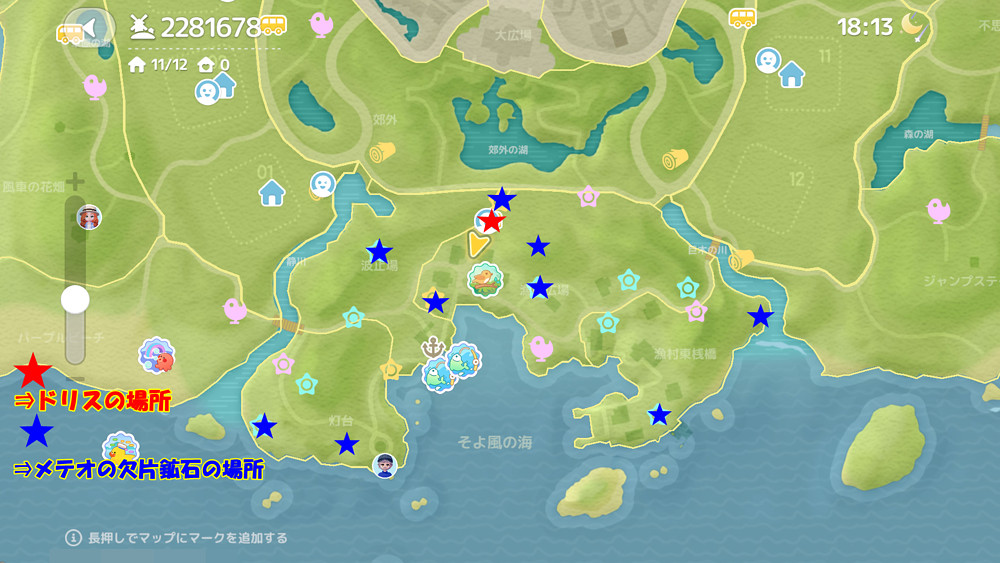 流星群のたびに場所はかわりますが、その日のドリスの場所は全プレイヤーで共通です。