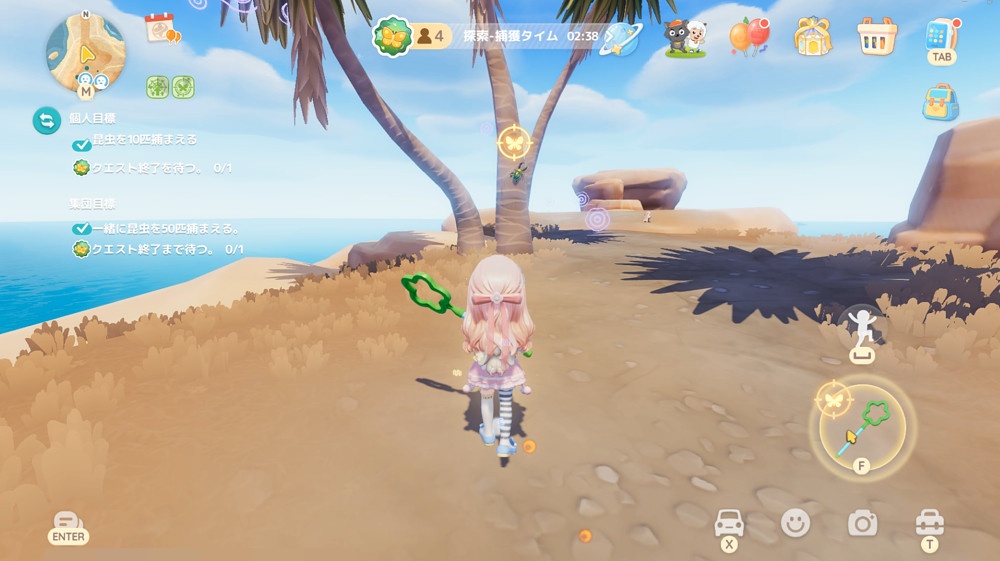 マップ左上の木あたりにいたので、ニジイロクワガタが欲しい場合はその周辺を重点的に周回しましょう。