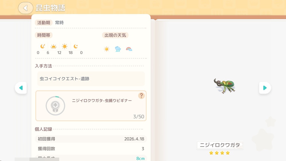 さらに、虫コイコイクエスト中に延長段階に入らないと出現しません。