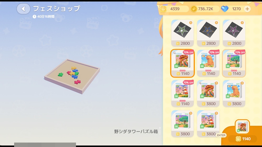 ぜひパズルを購入して採取量アップしましょう!