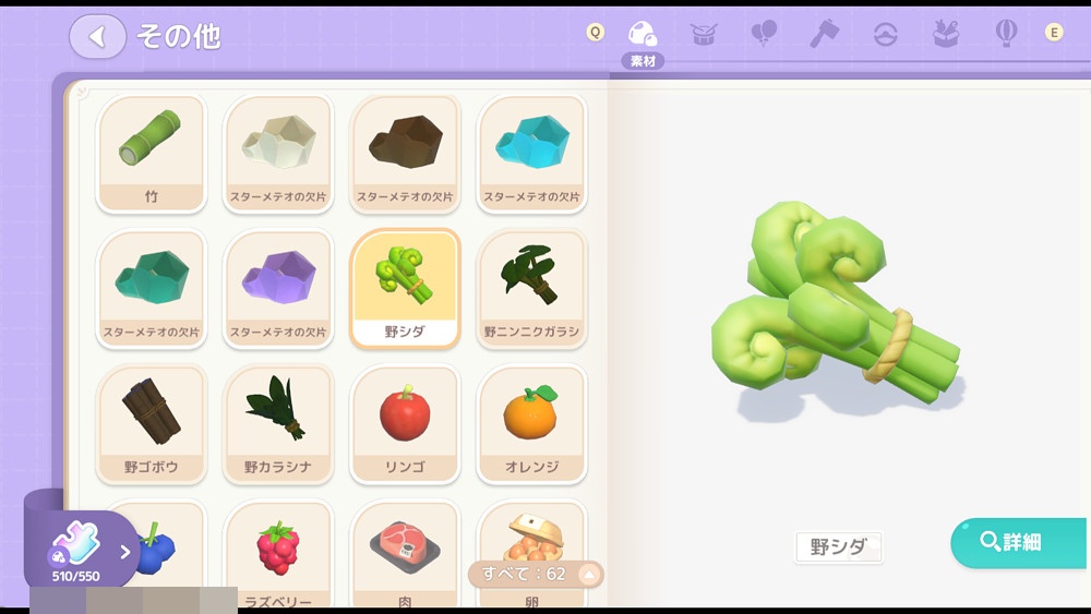 ハートピアスローライフでは、期間限定で山菜が登場しています。