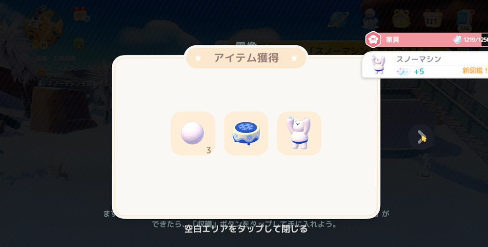 獲得した雪玉は、もらった彫刻台に置いて使用しましょう。