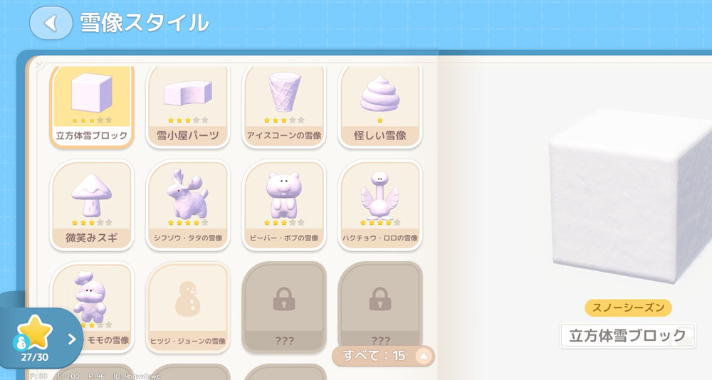 願い星が必要なため、雪像を解放すべきか悩んでしまいますね。
