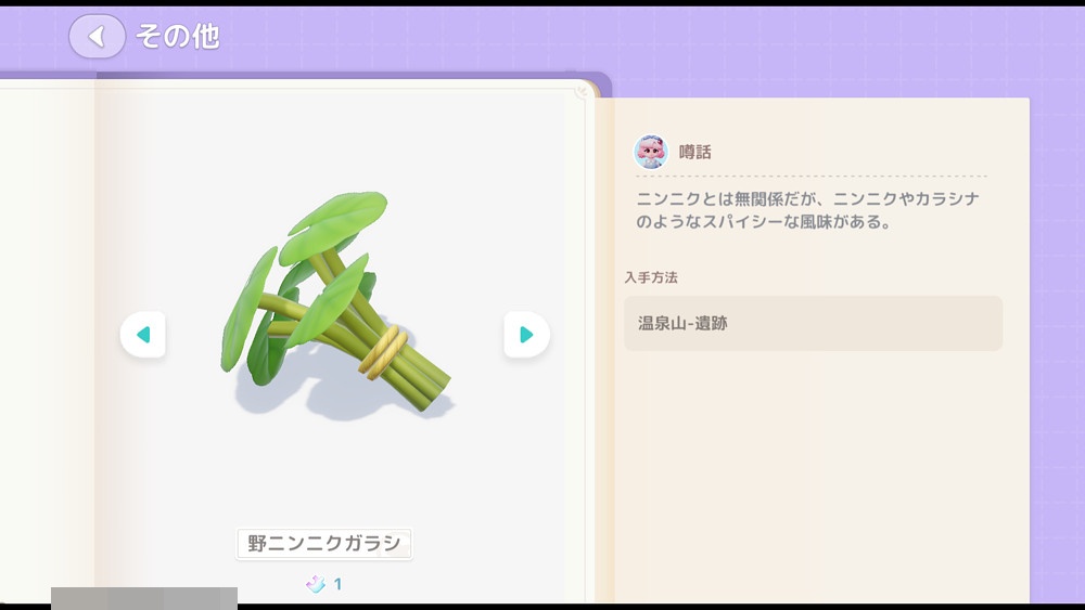 ハートピアスローライフ『山菜』の使い道