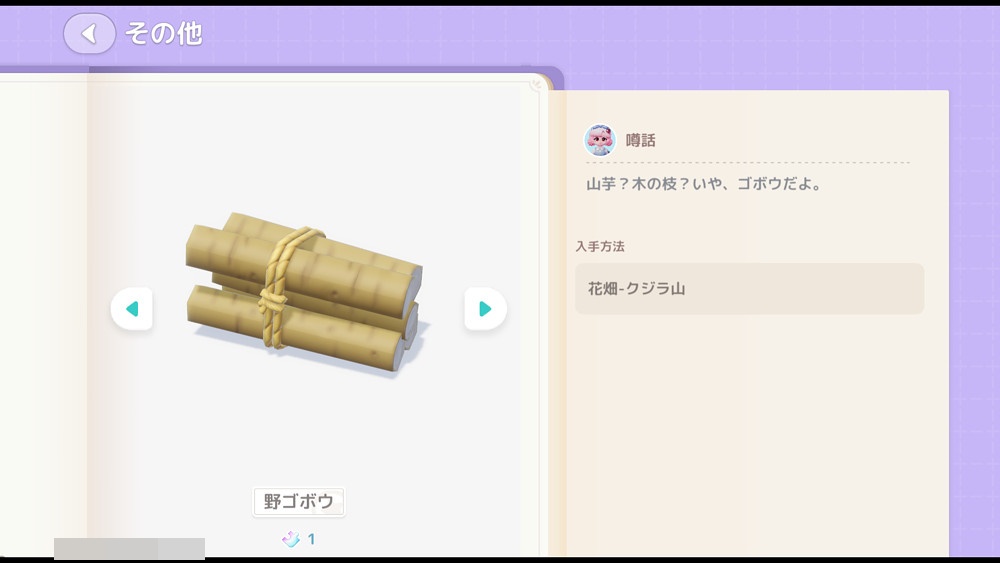 ドリームライトイベント期間中のみ入手できる山菜です。