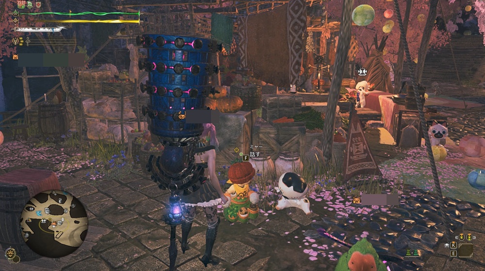 サイドミッションを受注するには、大集会所の食料配給所の横にいるミャーに話しかけます。