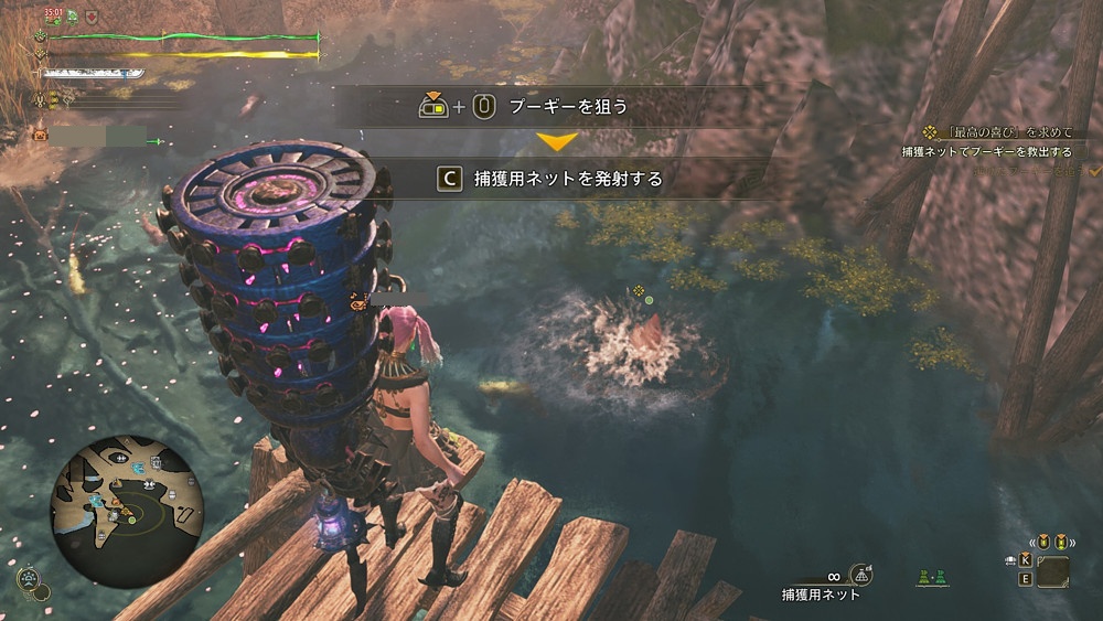 タルコロチャレンジの下にある水の中で溺れているので、ネットで捕獲しましょう。