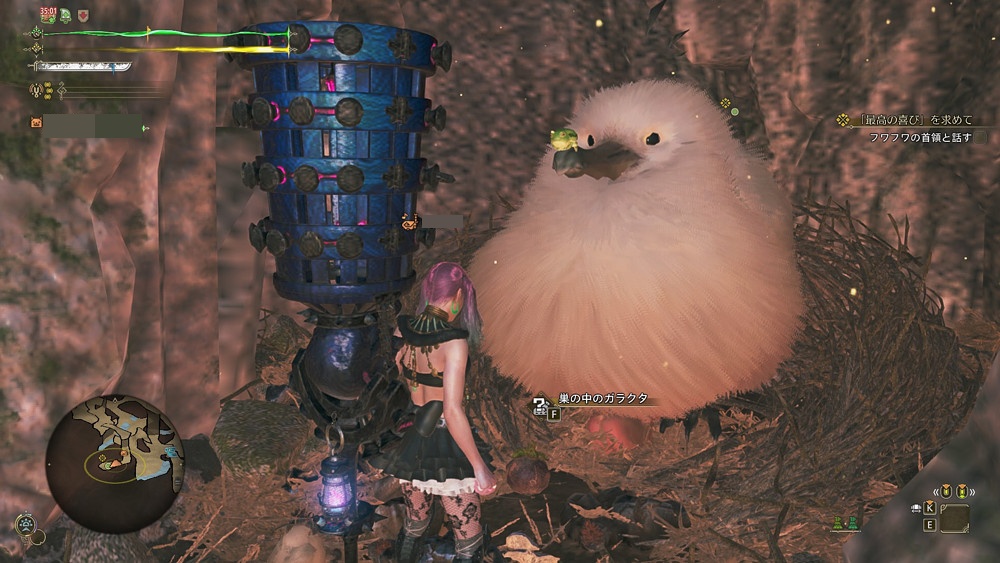 デカフワフワクイナの下にいるので、フワフワクイナに話しかけましょう。